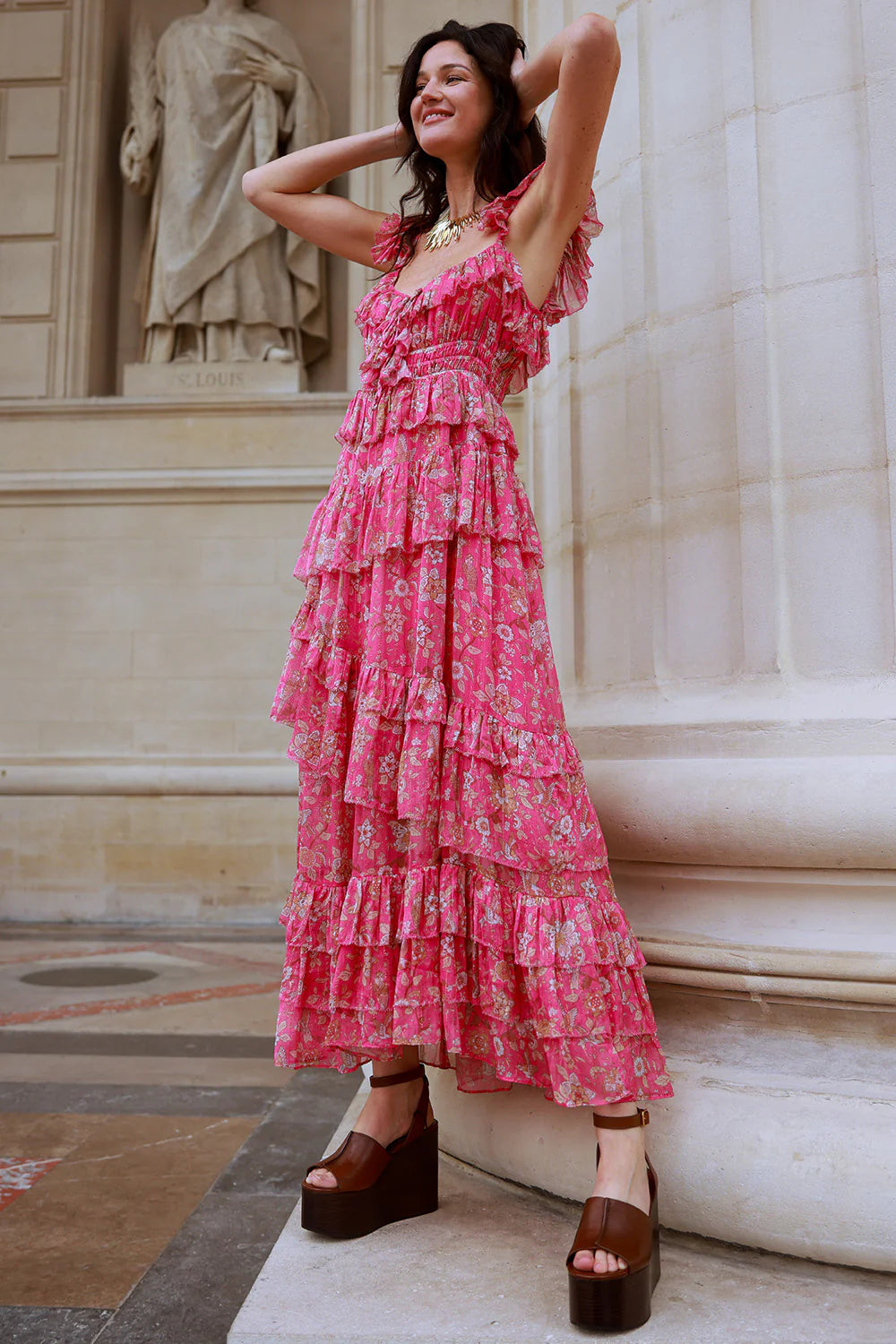 Ayanna Floral Pleated Tiered Dress